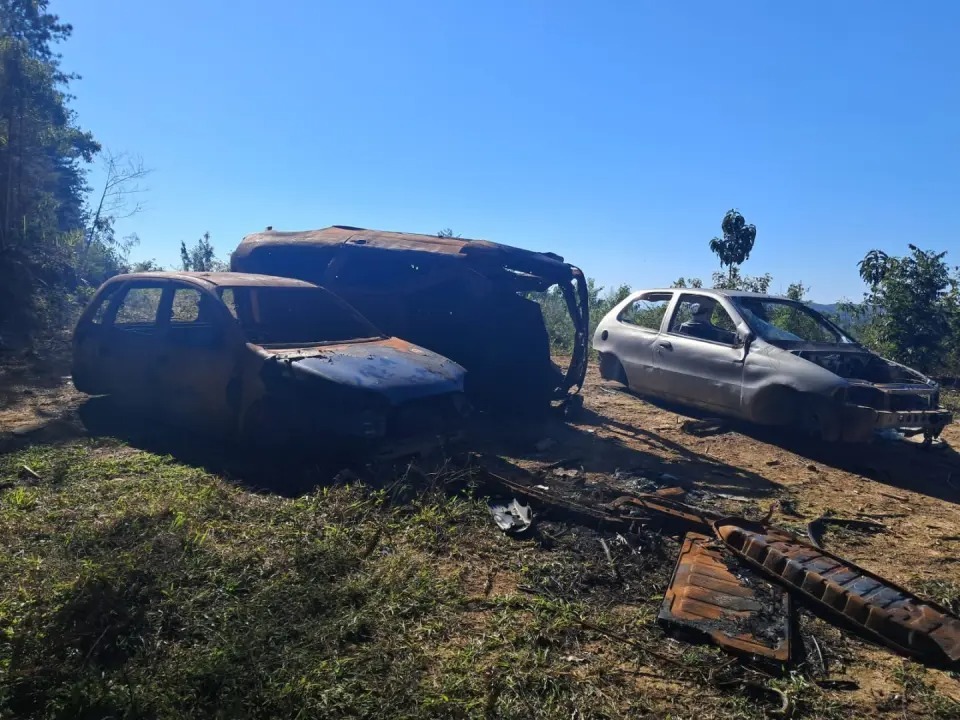 Durante o patrulhamento, os policiais encontraram dois veículos parcialmente depenados, ambos com alerta de roubo. Diante da suspeita, a equipe intensificou a varredura na região e localizou, em estradas próximas, outras 18 carcaças de carros, completamente desmontadas e sem condições de retirada.